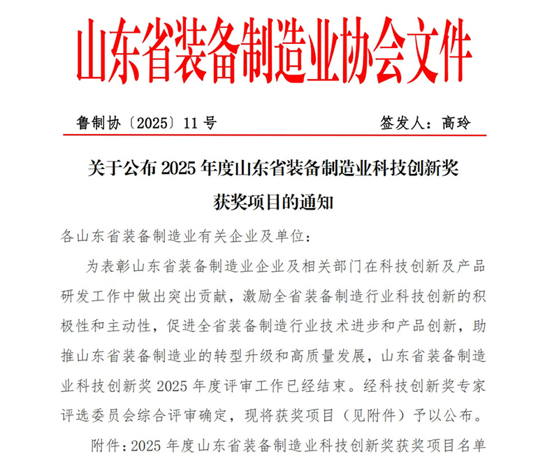 On November 11, the Shandong Equipment Manufacturing Association announced the list of winners for the 2025 Shandong Equipment Manufacturing Technology Innovation Awards. Shandong Zhongjie Special Equipment Co., Ltd. stood out among numerous outstanding achievements and won the first prize for its project "Research and Industrialization of Strain Strengthening Key Technologies in PAW-GTAW Composite Welding for Cryogenic Containers." This achievement fully demonstrates the company's technical strength and leading position in the field of special equipment.