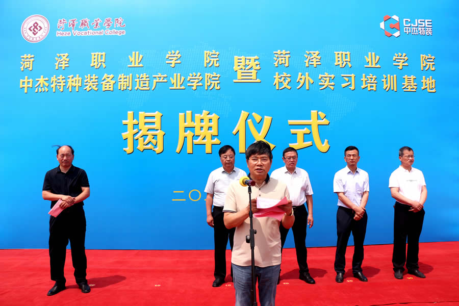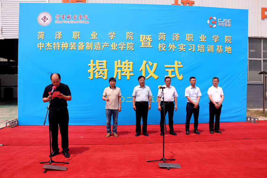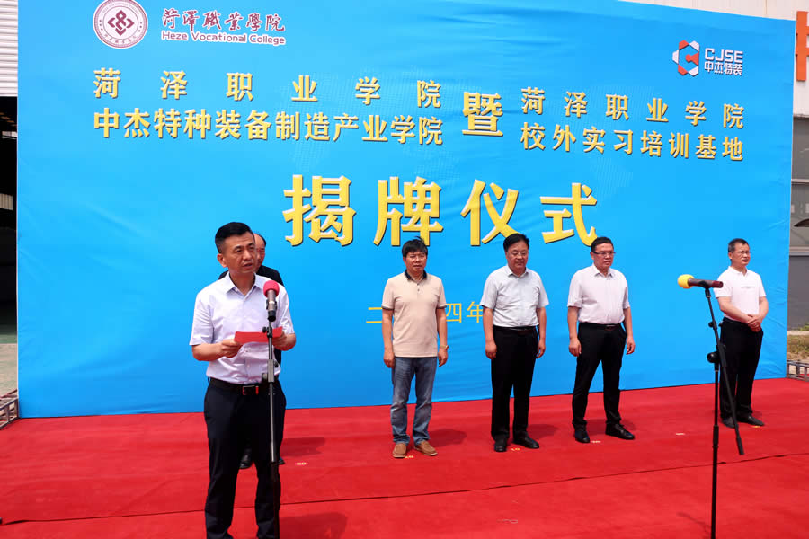 Subsequently, amidst the attention and anticipation of all attendees, the "Heze Vocational College Zhongjie Special Equipment Manufacturing Industry College" and "Heze Vocational College Off campus Internship and Training Base" were officially unveiled, announcing the establishment of the Manufacturing Industry College. This marks a new step in the cooperation and joint construction between Heze Vocational College and Shandong Zhongjie Special Equipment Co., Ltd., and opens a new era of industry education integration and collaborative education.